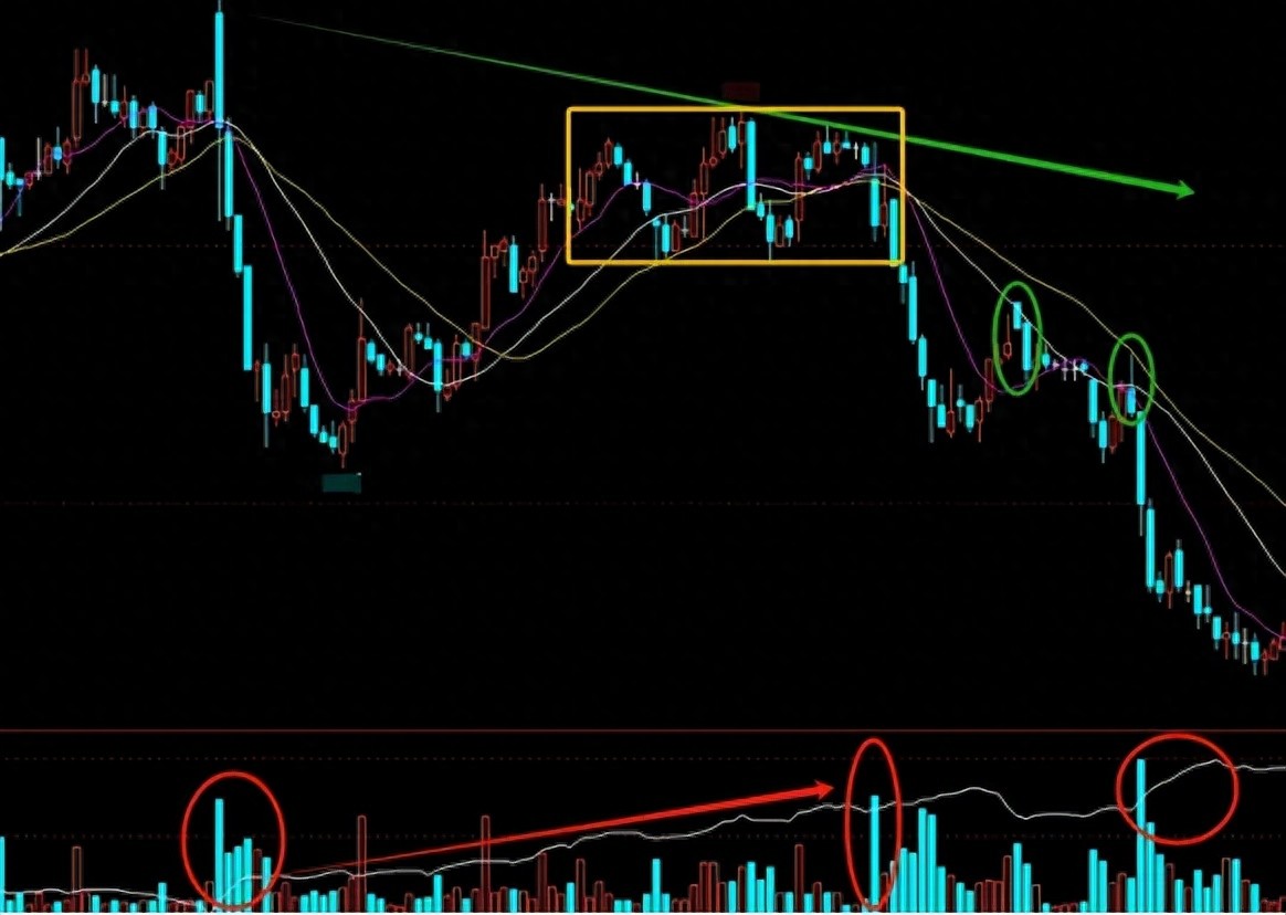 之后出现小高位的三重顶,技术上非常明显的压力位,最后在一根放量突破阴线的挑战下,空头成功了。但是仓位还是增,多头没放弃,又去做反弹,但后面均线压制,小高位都是压力形态的单K,最后又是放量K下砸。