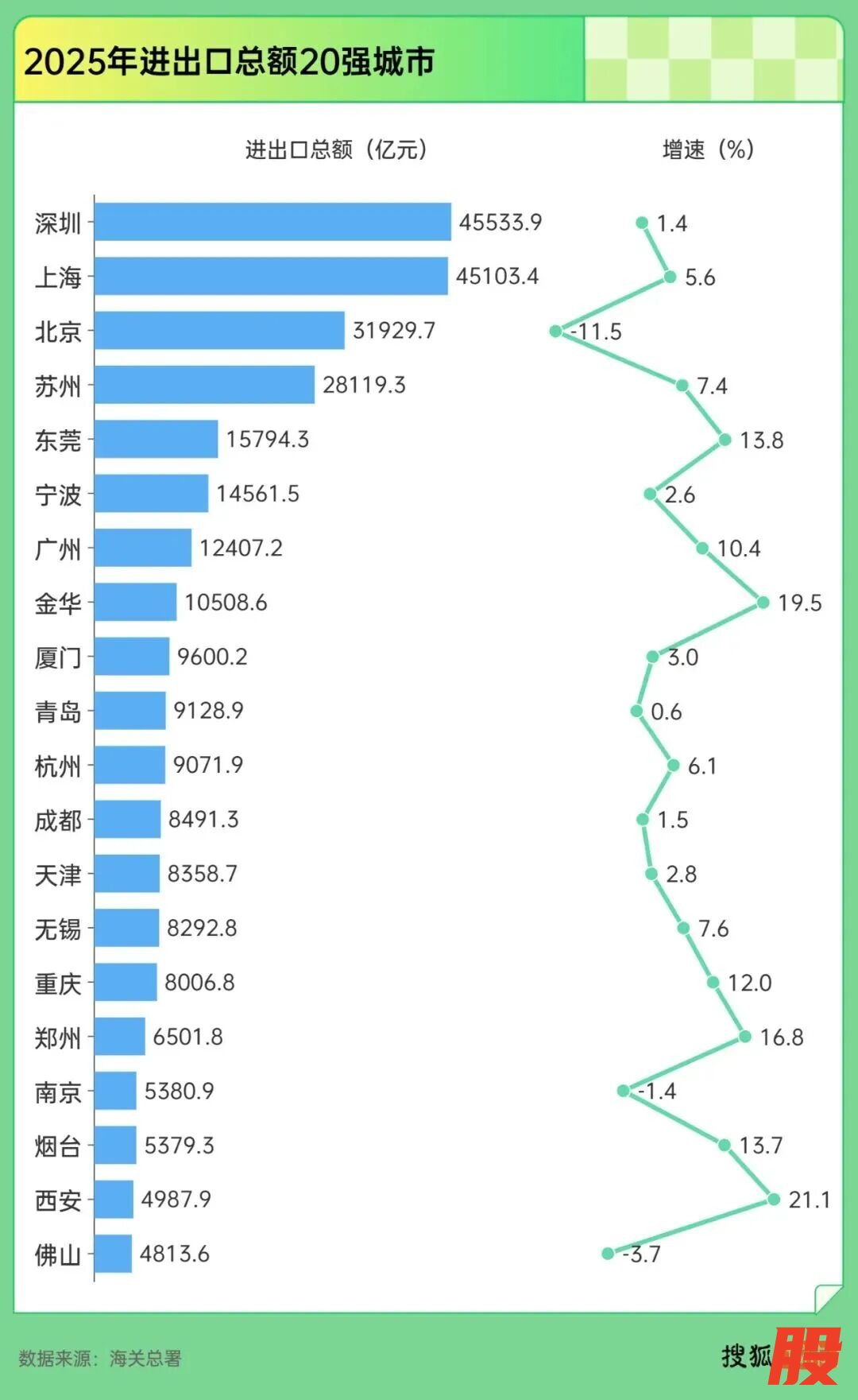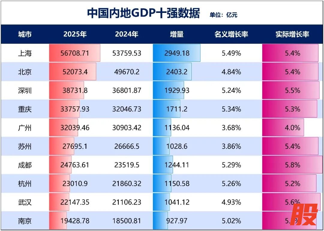 北京则在2025年,以2400亿+的增量,冲破了5万亿,成为继上海之后全国第二个5万亿量级的城市。