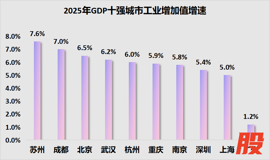 成都2025年规模以上工业增加值比上年增长7.0%,这一增速在十强城市中位居第二,仅次于苏州。
