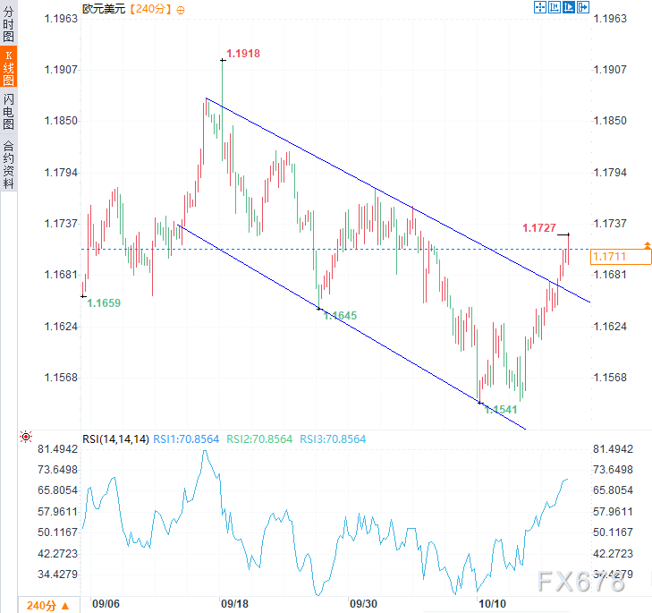 (欧元兑美元4小时图,来源:易汇通)北京时间16:14,欧元兑美元交投于1.1706/07。