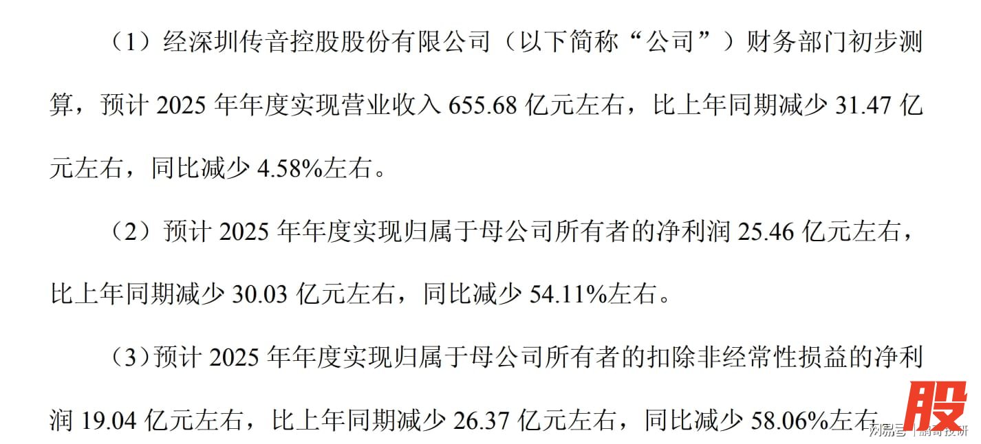 131. 传音控股,净利下滑54%,盈利25.40亿