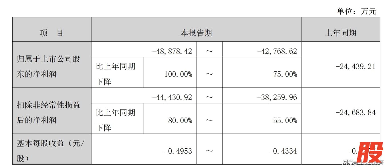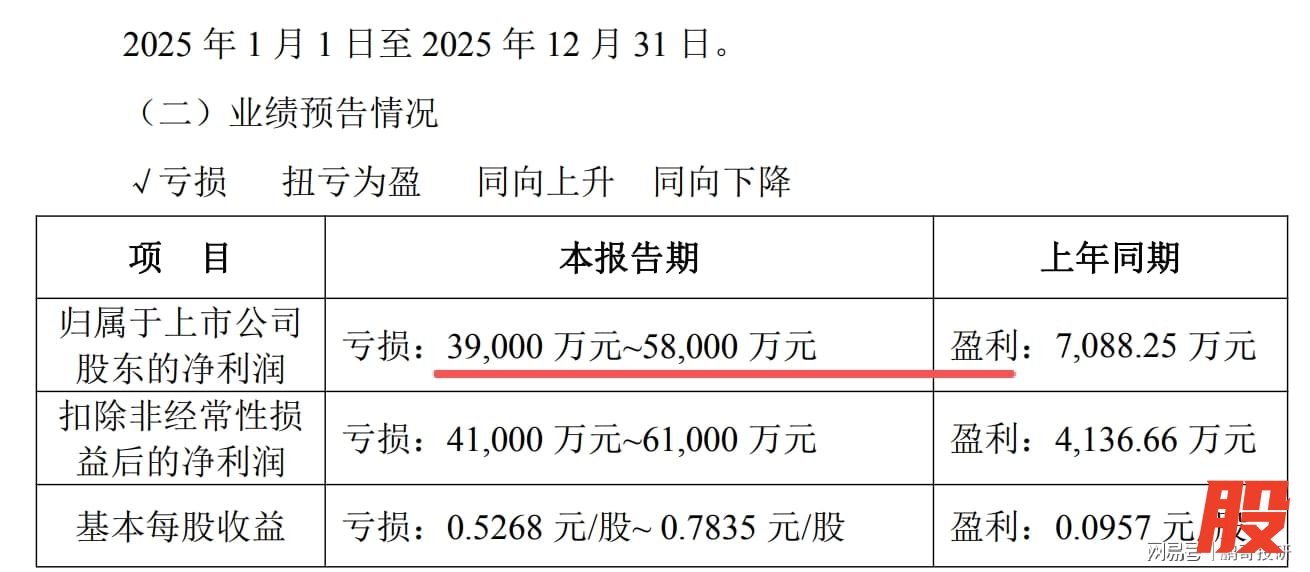这个股票2025年净亏损了4.28亿到4.89亿元。